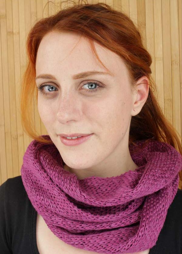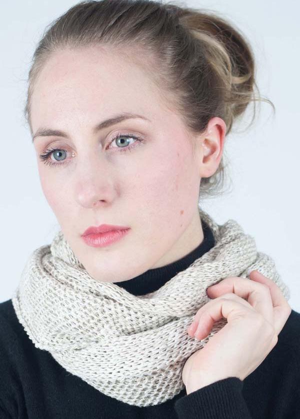 A lovely linen and cotton mix gives the Snood (or Infinity Scarf, if you hail from over the water) a very subtle sheen and is so wonderfully soft to the touch, you can’t help but stroke the surface and when you wear it you won’t want to take it off!