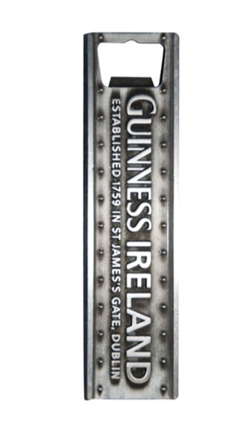 The Guinness® Metal Girder Magnet is a stylish metal alloy magnetic bottle opener with 'Guinness® Ireland, ESTD 1759, St James Gate' design.