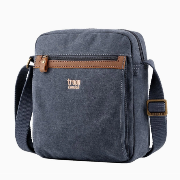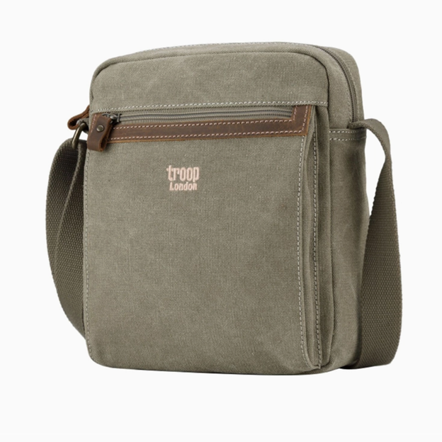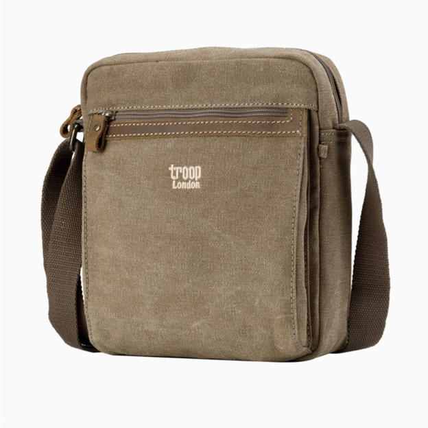 Troop London Classic Canvas across body bag TRP0218 is a simple yet spacious single compartment shoulder bag with zipping pockets on the front and back is suitable for all your necessities.