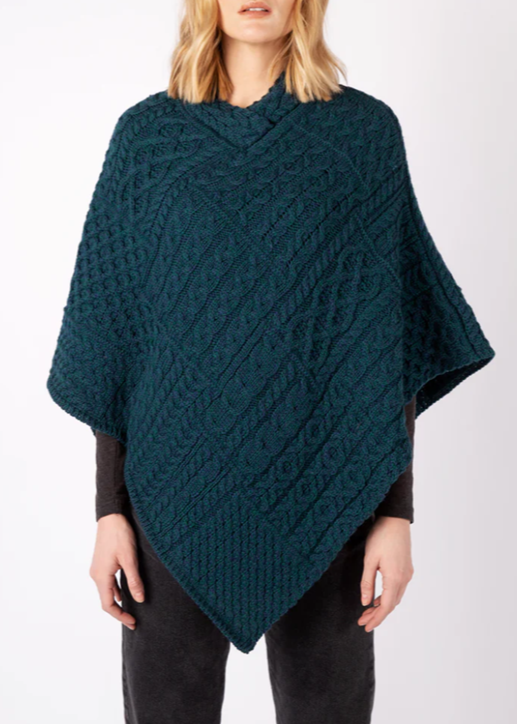 The poncho is a relaxed and generous fit, designed to flatter all shapes.