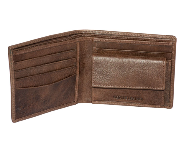 Five slot RFID protected wallet with coin pouch, two notes sections and two receipt slots. Finished in the best of our distressed look leather, gift boxed for the perfect gents gift. This product shields the contents from radio frequency identification (RFID) readers by stopping the information being transmitted through the fabric inside the wallet reducing the risk of identity theft. 11cm by 9cm by 2.5cm