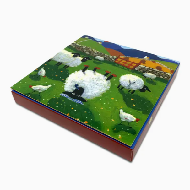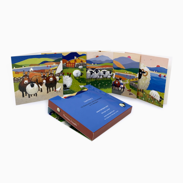 Pack of ten sheep themed greeting cards (2x 5 designs) and blank envelopes, packaged in a card wallet