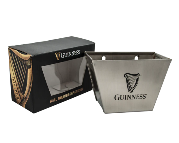 Guinness bottle cap catcher to keep all your bottle caps in one place. Featuring the official logo and harp. Wall-mountable for convenience.