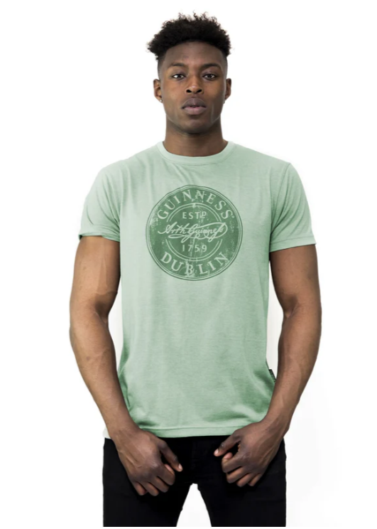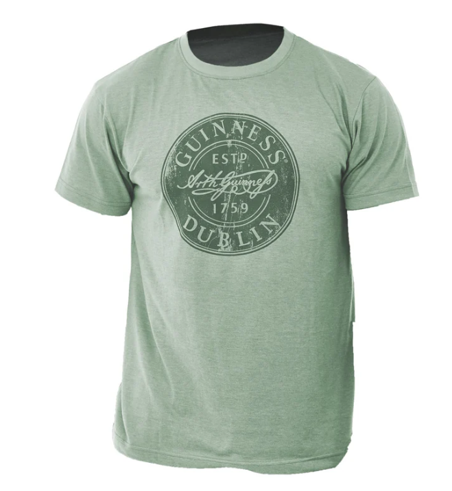 Guinness Green Bottle Cap Tee featuring a center front distressed 'Guinness® Bottle Cap' graphic screen print.