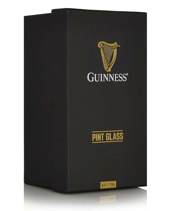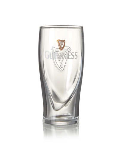 Guinness Half Pint Glass: A must-have for Guinness enthusiasts. Scaled-down Guinness Gravity Glass with contoured shape, embossed Harp, and iconic logo.