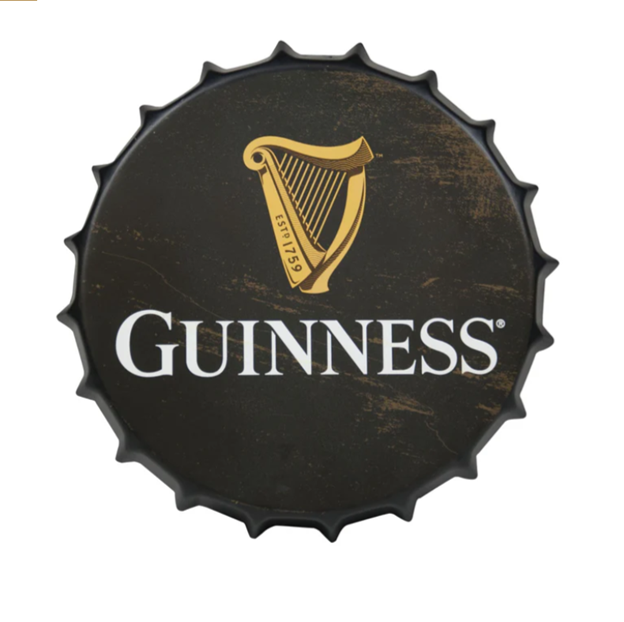 Durable metal wall art sign featuring the iconic 'Guinness' harp logo in a distressed style.