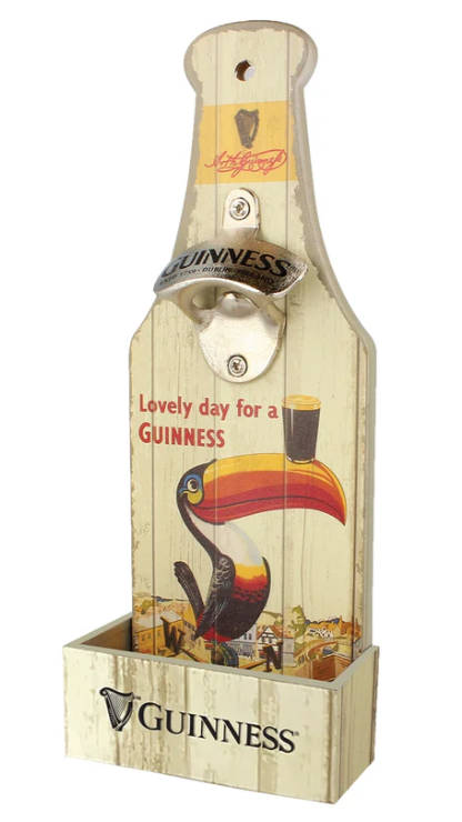 Looking for the perfect finishing touches for your home bar? The Guinness toucan bottle opener is a fun way to open your bottles and catch their caps, featuring the renowned Guinness toucan illustration!