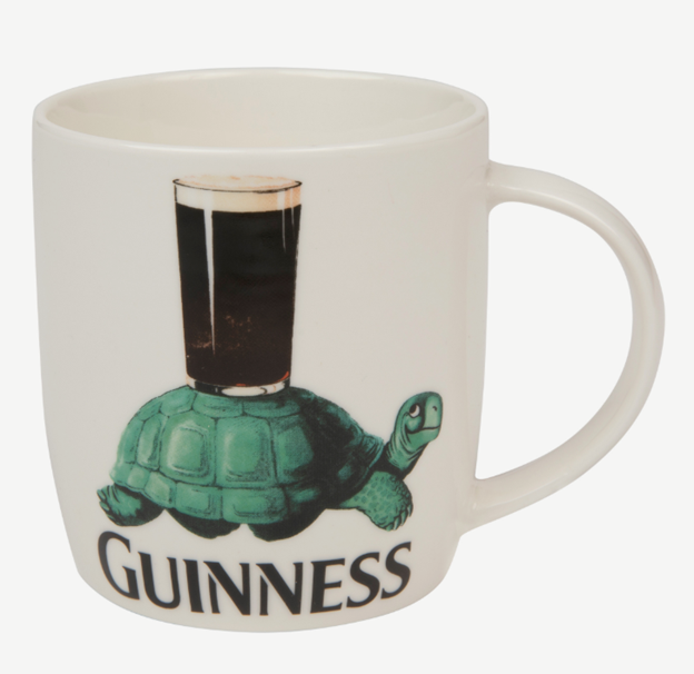 Officially licensed Guinness Turtle Mug. This white ceramic mug features a vintage "Guinness Turtle" design.
