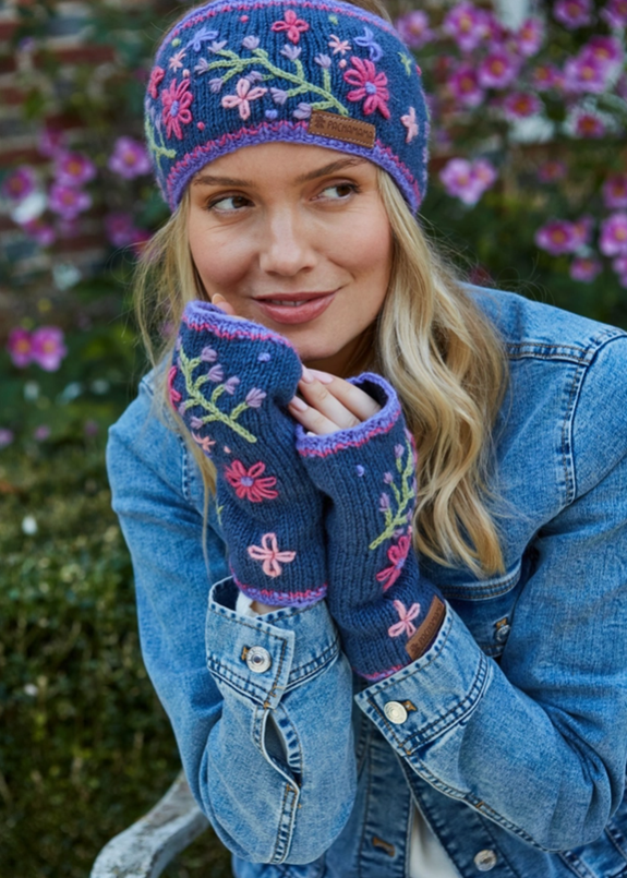 Our Hampton Court range are designed to show off their beautifully embroidered dainty flowers. Hand knitted to perfection by skilled artisans. Fleece lined to keep your ears warm.
