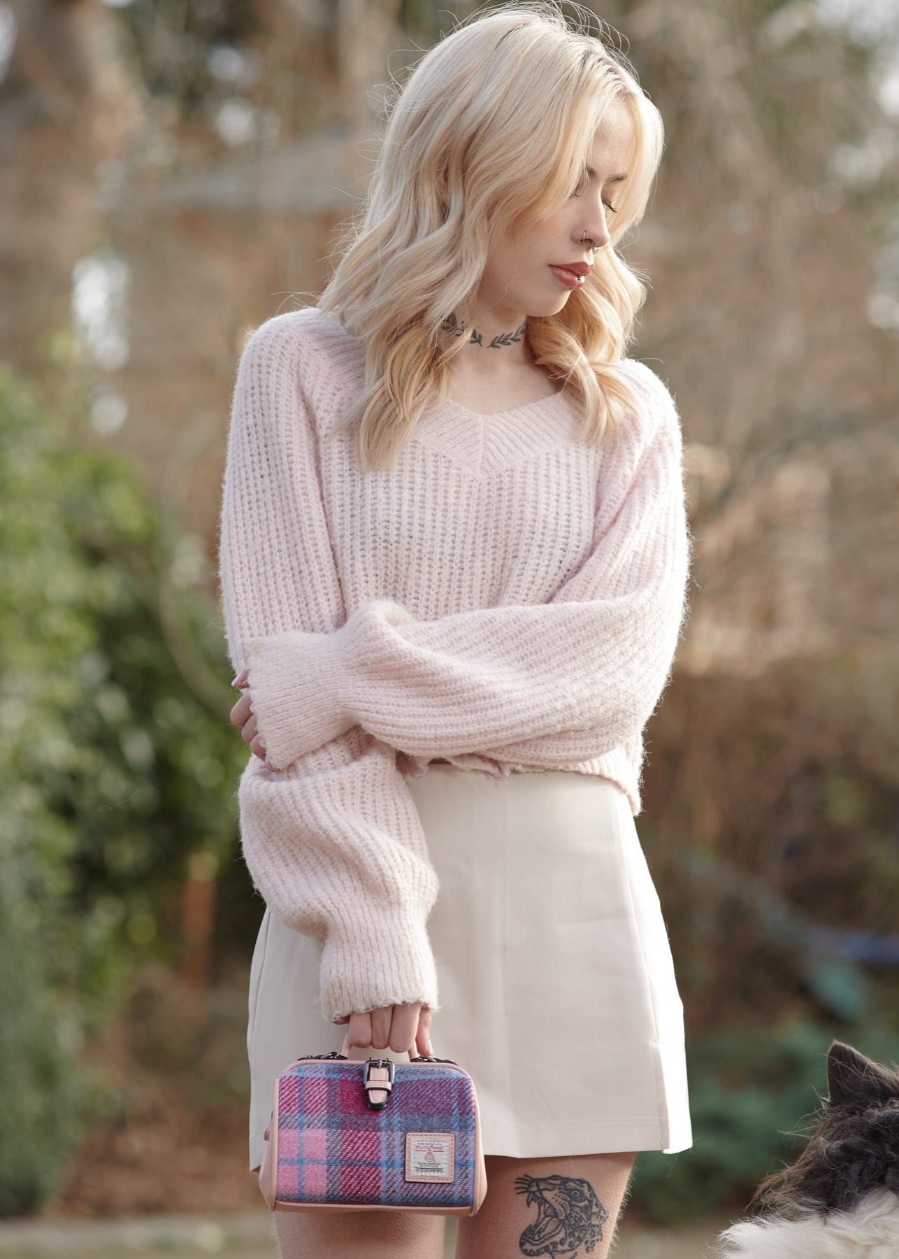Crafted from premium PU leather and genuine Harris Tweed®, it exudes quality and style. Complete with two handles for handheld carrying or a chain crossbody strap for added versatility, this bag is a stylish and practical choice for any occasion.