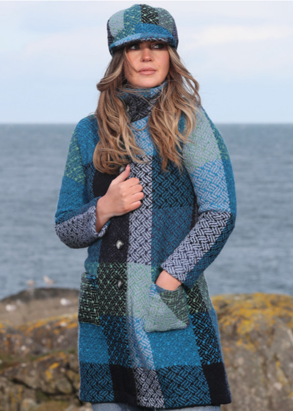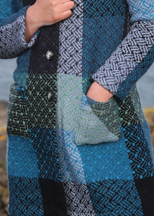 This beautiful and unusual lightweight long coat is woven from a rich wool blend at Branigan's mill in Ireland.