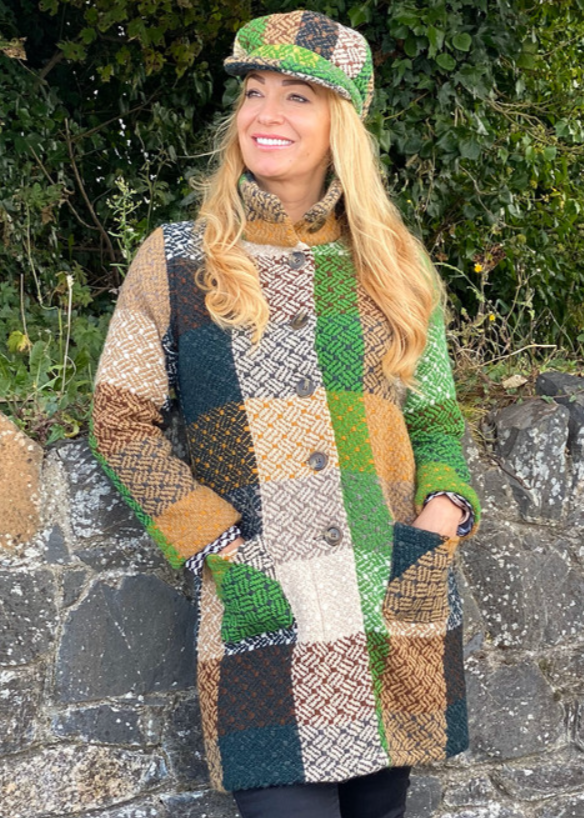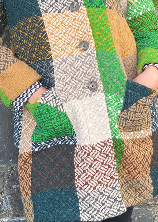 This beautiful and unusual lightweight long coat is woven from a rich wool blend at Branigan's mill in Ireland.