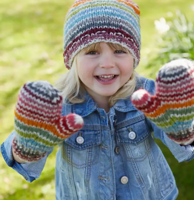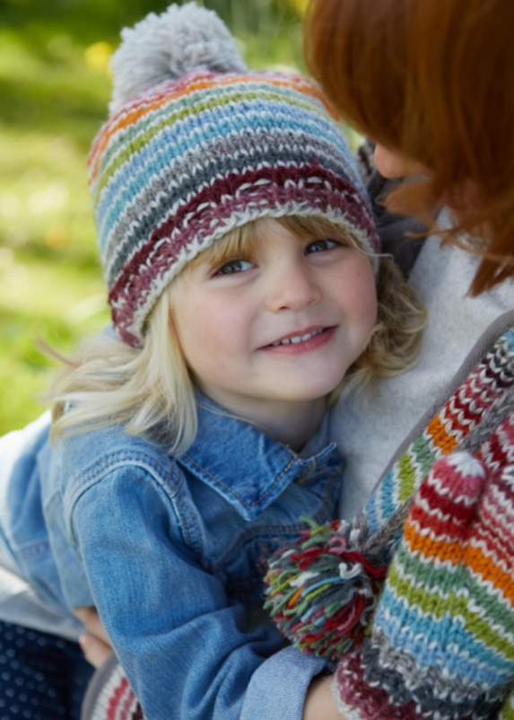 A mix of brightly coloured stripes on a natural oatmeal background.