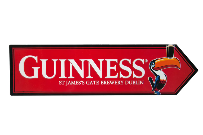 Red Toucan Pint Road Sign: Celebrate traditional Guinness® branding with this durable metal wall art featuring the iconic Guinness® Gilroy toucan.