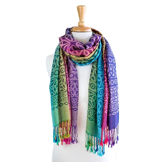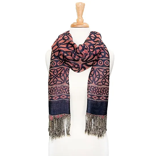 Keep yourself comfortable and stylish with the Rita scarf, which features endless Trinity Knot designs!  Silky-soft and lightweight with a rich, gorgeous sheen, the Rita is long enough to wrap loosely around your neck, or to drape as a shawl on a chilly evening.