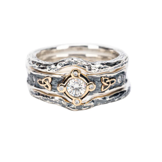 Silver And 10k Gold Rocks 'n Rivers 3-piece Ring - Moissanite