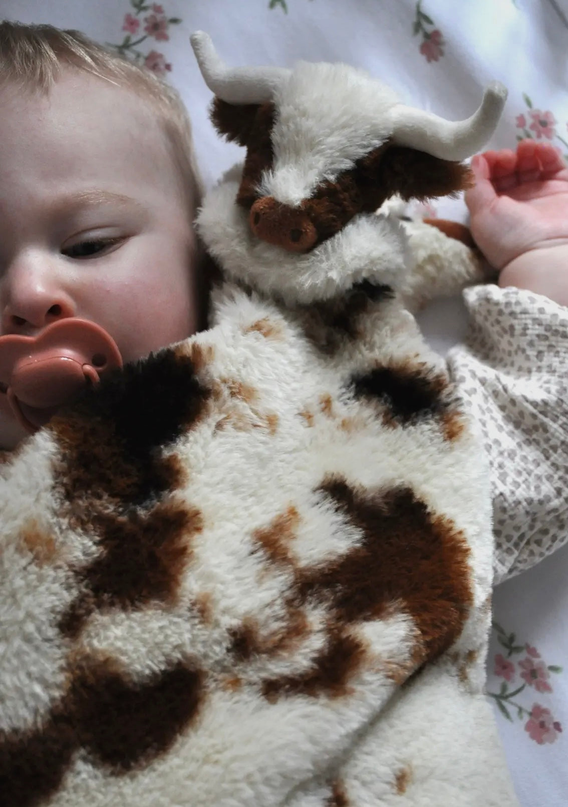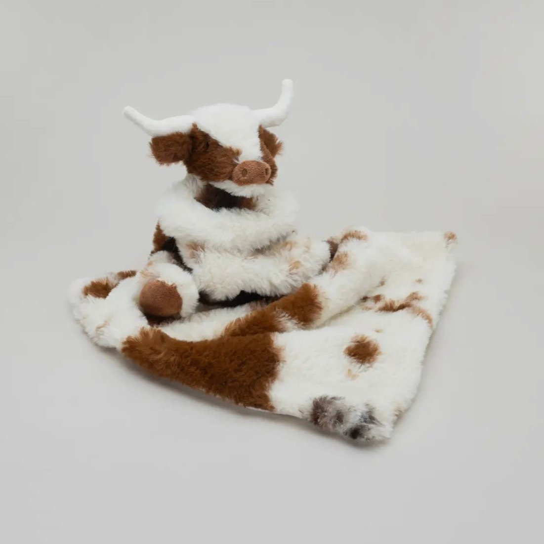 Super soft double layer comfort soother blanket with a mini toy attached.