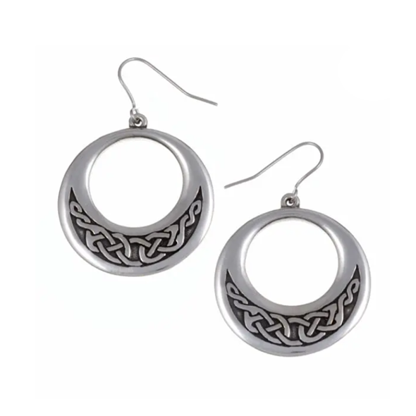 Pewter polished hoops with an embossed Celtic knot detail on surgical steel hooks.