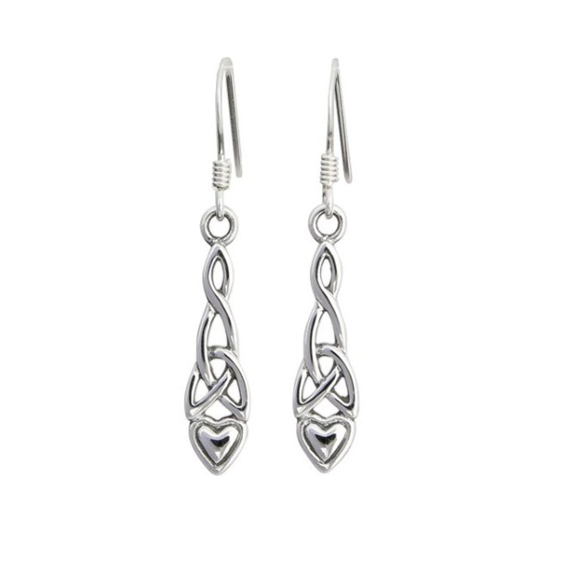 Sterling Silver Celtic Heart Drop Earrings 23mm by 6mm supplied in our quality gift box , item 5754 is the matching necklace .
