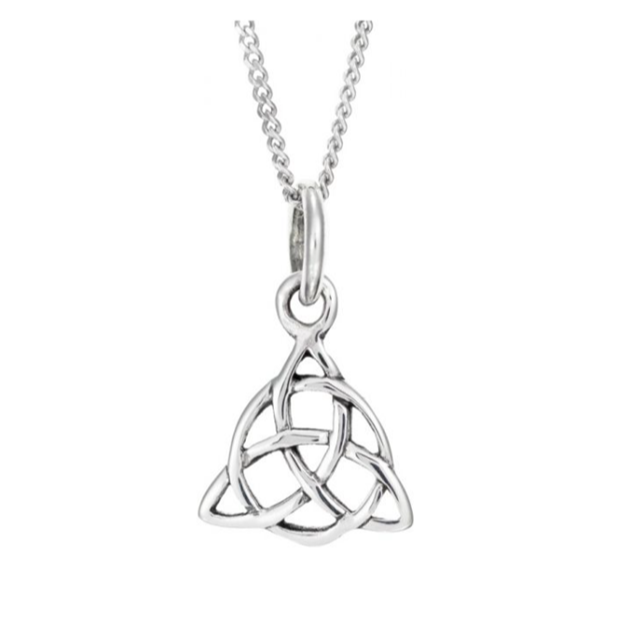 Sterling Silver Triquetra circle interlaced Celtic necklace, complete on an 18 inch chain and gift boxed. 10mm by 12mm