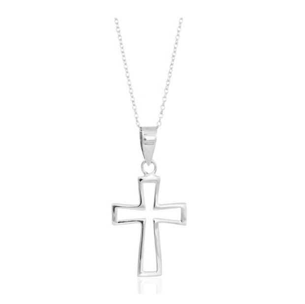 Sterling Silver Cut Out Cross Necklace - 23 x 17 mm - Supplied with 18inch chain, in our quality gift box.
