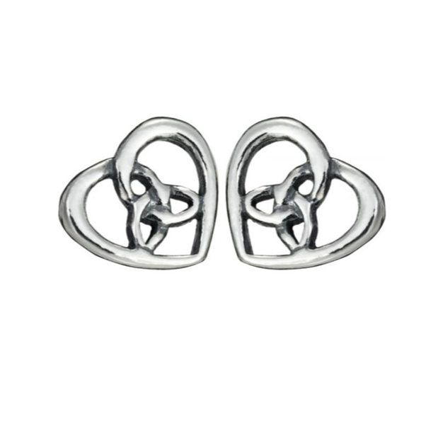 Sterling Silver heart in Triskelle Celtic Stud earrings boxed 9mm by 8mm