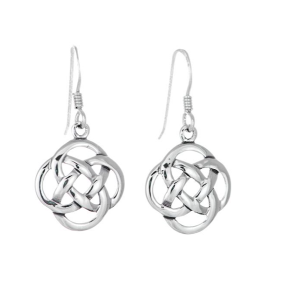 These attractive Celtic knot drop earrings hang perfectly from your ears. Each sterling silver earring measures 15 mm x 15 mm, just the right size to add a little flair to any outfit. Give these as a gift using the quality gift box that comes with every order.