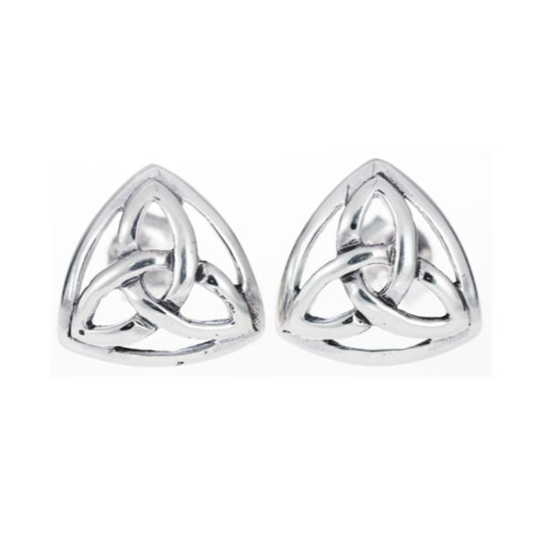 Sterling Silver, 11mm by 11mm, Triangle Trinity Knot Stud Earrings. Supplied in our quality gift box.