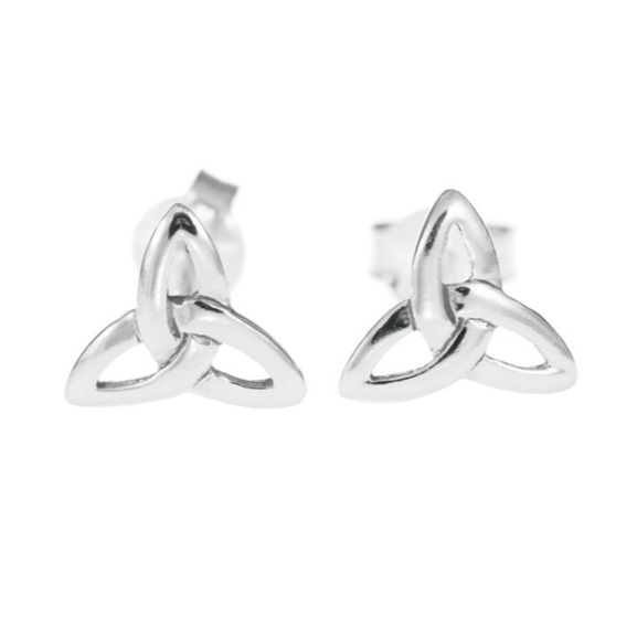 Sterling Silver, 8mm by 9mm, Trinity Knot Stud Earrings. Supplied in our quality gift box.