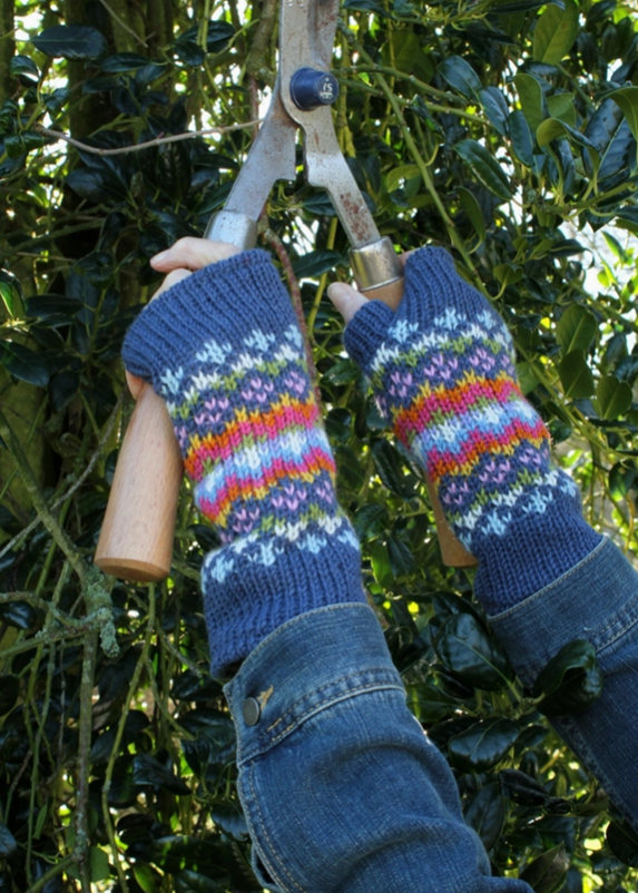 Clifden - A Traditional diamond fair isle pattern. These fine knit wristwarmers keep your hands warm and your fingers free.